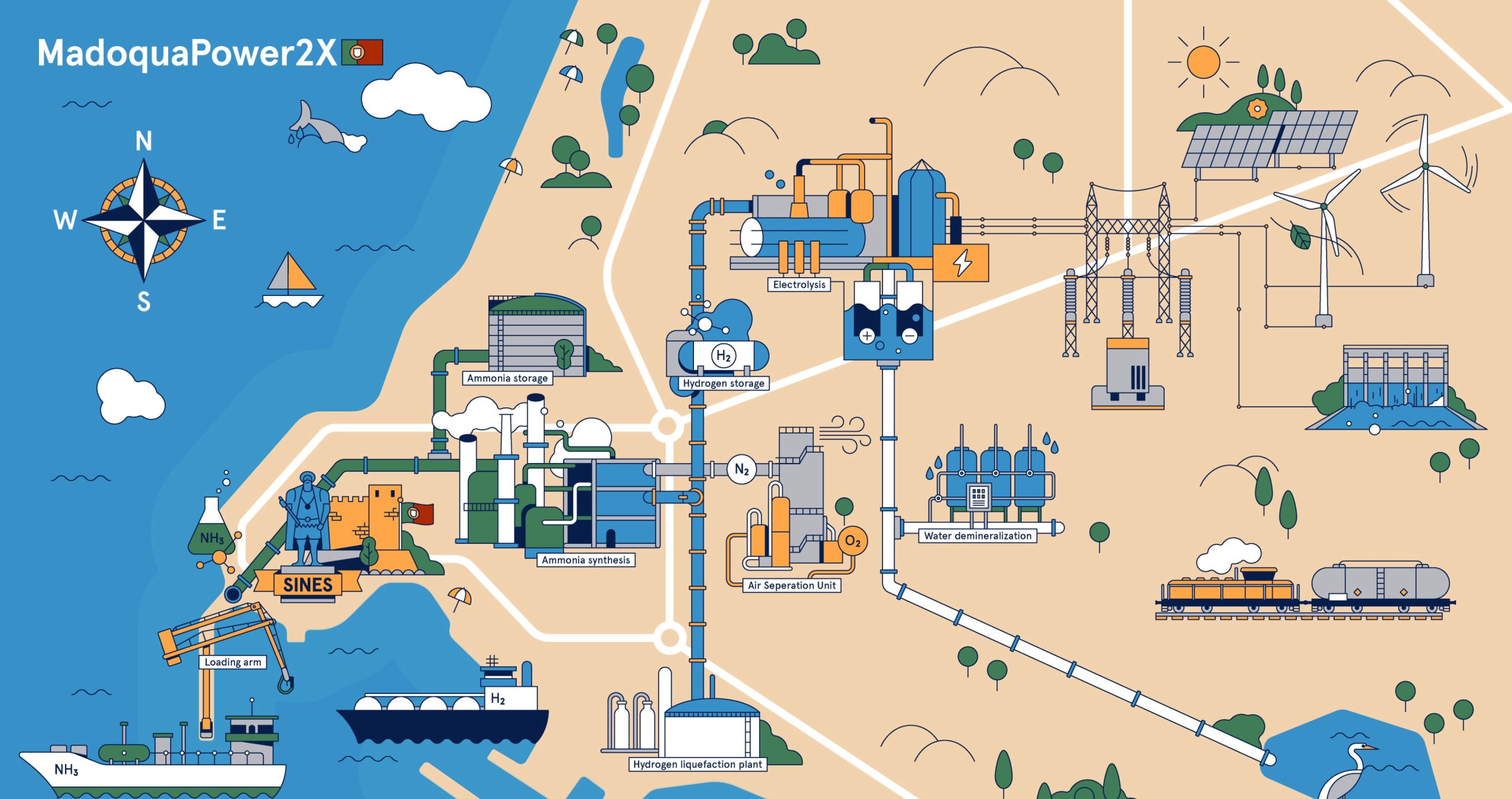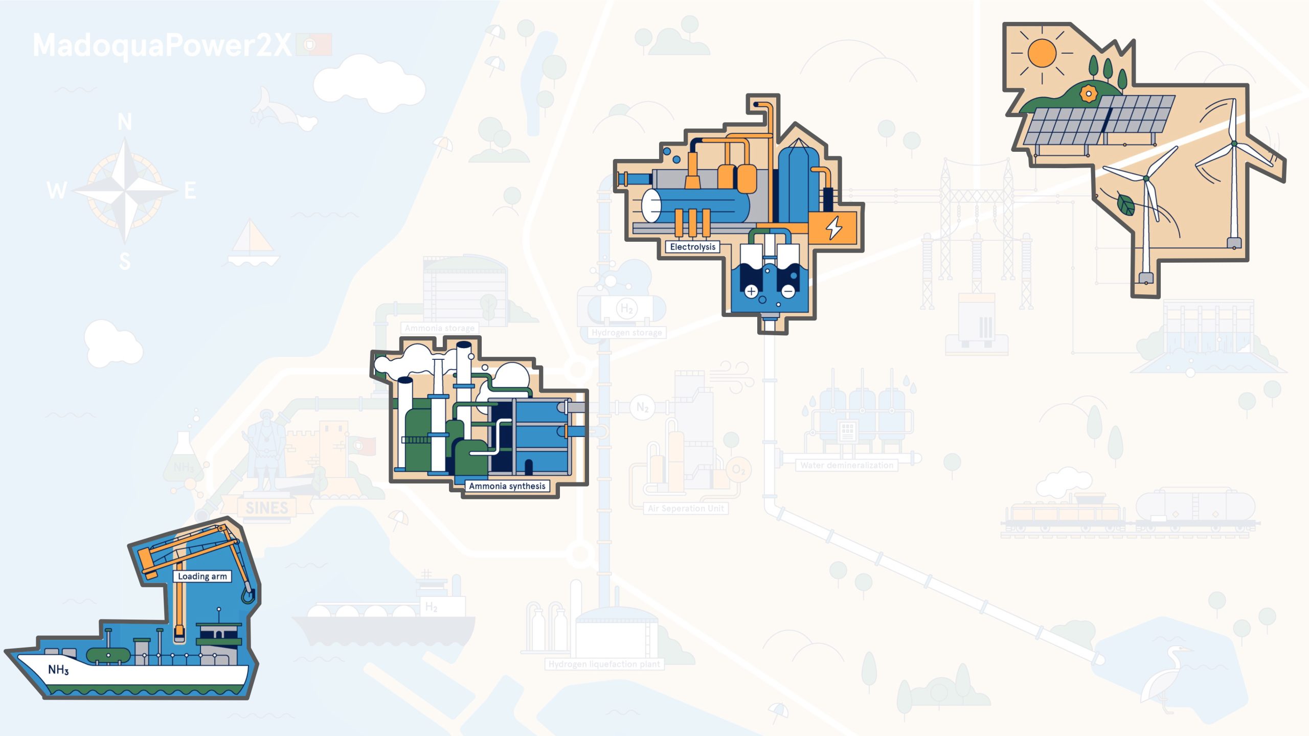 Para além disso, o MadoquaPower2X irá utilizar uma capacidade de produção de até 500.000 toneladas de amónia verde, por ano.